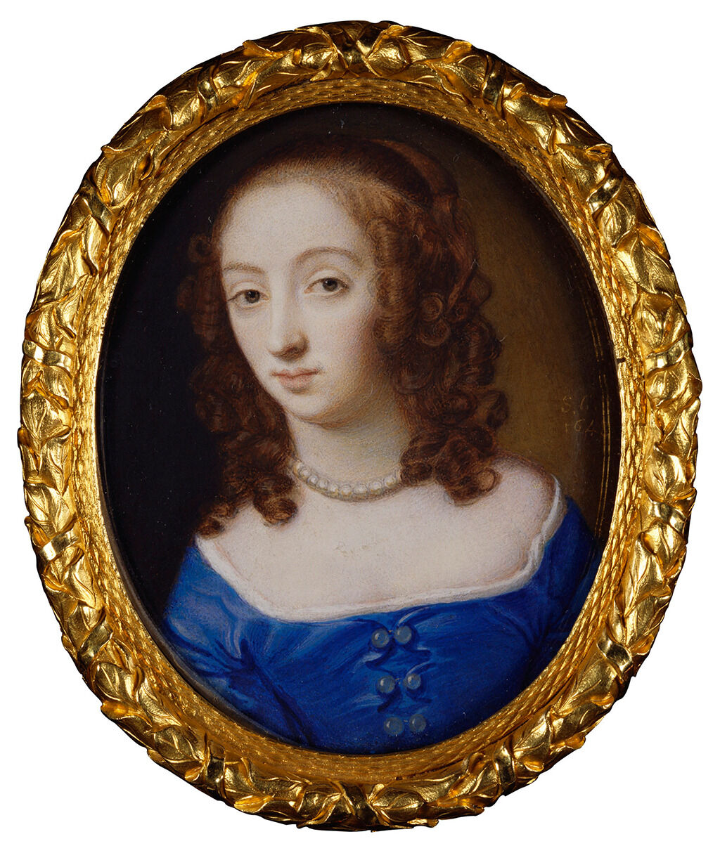This portrait was formerly believed to be a likeness of Elizabeth Claypole, née Cromwell (1629–1658).1Claypole married John Claypole of Northborough Manor, near Peterborough, on January 13, 1646. They had four children, one of whom, Oliver, died in 1658, a month before his mother. See R. W. Ramsey, “Elizabeth Claypole,” English Historical Review 7, no. 25 (January 1892): 36. Claypole was the second-born and reportedly favorite daughter of English statesman, politician, and soldier Oliver Cromwell, who called her “Betty.”2Oliver Cromwell to Elizabeth Cromwell, Edinburgh, April 12, 1651, in W. C. Abbott and C. D. Crane, eds., The Writings and Speeches of Oliver Cromwell, 2:405, cited in Lisa Nunn, “‘An hundred times fitter for a Barn than a Palace’: A Gendered Analysis of the Protectoral Portraits of Elizabeth Cromwell and Her Daughter,” Cromwelliana 3, no. 10 (2021): 55, https://www.olivercromwell.org/wordpress/wp-content/uploads/2021/09/Cromwelliana 2021.pdf. Because the earliest known portraits by Thomas Flatman date to around 1660, after Claypole’s early death in 1658, this was previously assumed to be a posthumous portrait.3Some scholars speculate that Elizabeth Cromwell’s death broke her father’s heart and precipitated his death one month later. See the entry for a portrait of Elizabeth Claypole by the circle of Sir Peter Lely in “Key Collections,” Cromwell Museum, accessed April 17, 2024, https://www.cromwellmuseum.org/cromwell/key-collections/key-collection/art. However, no verified portrait of Elizabeth Claypole is known to exist, despite many portraits that bear this identification. The most widely recognized depiction is a miniature by Samuel Cooper from 1653, held in the collection of The Duke of Buccleuch, which portrays a younger woman with a slimmer face and notably large brown eyes (Fig. 1). Although the present sitter does bear some physical resemblance to the figure in Cooper’s miniature, the sitter in the Nelson-Atkins portrait has distinctive blue eyes, thus making the attribution to Claypole untenable. Additionally, there were two other women in Cromwell’s life named “Elizabeth”: his mother, Elizabeth Cromwell, née Steward, and wife, Elizabeth Cromwell, née Bourchier. Examination of their likenesses reveals that they too had brown eyes, further supporting the conclusion that neither of them can be the present sitter.4Lisa Nunn includes pictures of the Cromwell women in “An hundred times fitter for a Barn than a Palace” on pages 49, 52, and 56, respectively: Robert Walker (ca. 1599–1658), Elizabeth Cromwell, née Steward (1565–1654), Mother of the Lord Protector, ca. 1654, oil on canvas, 29 1/2 x 24 7/16 in. (75 x 62 cm), Museum of London; Robert Walker, Elizabeth Cromwell, née Bourchier (1598–1665), Her Highness the Protectoress, ca. 1657, oil on canvas, 48 13/16 x 39 3/8 in. (124 x 100 cm), Cromwell Museum, Huntingdon, England; and Circle of Sir Peter Lely, Elizabeth Claypole, née Cromwell (1629–1658), the Lord Protector’s Second Daughter, ca. 1653, oil on canvas, 26 x 18 7/8 in. (66 x 48 cm), Cromwell Museum.