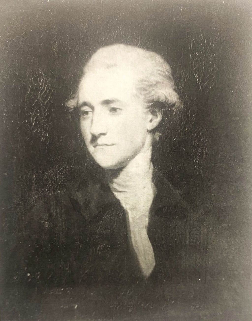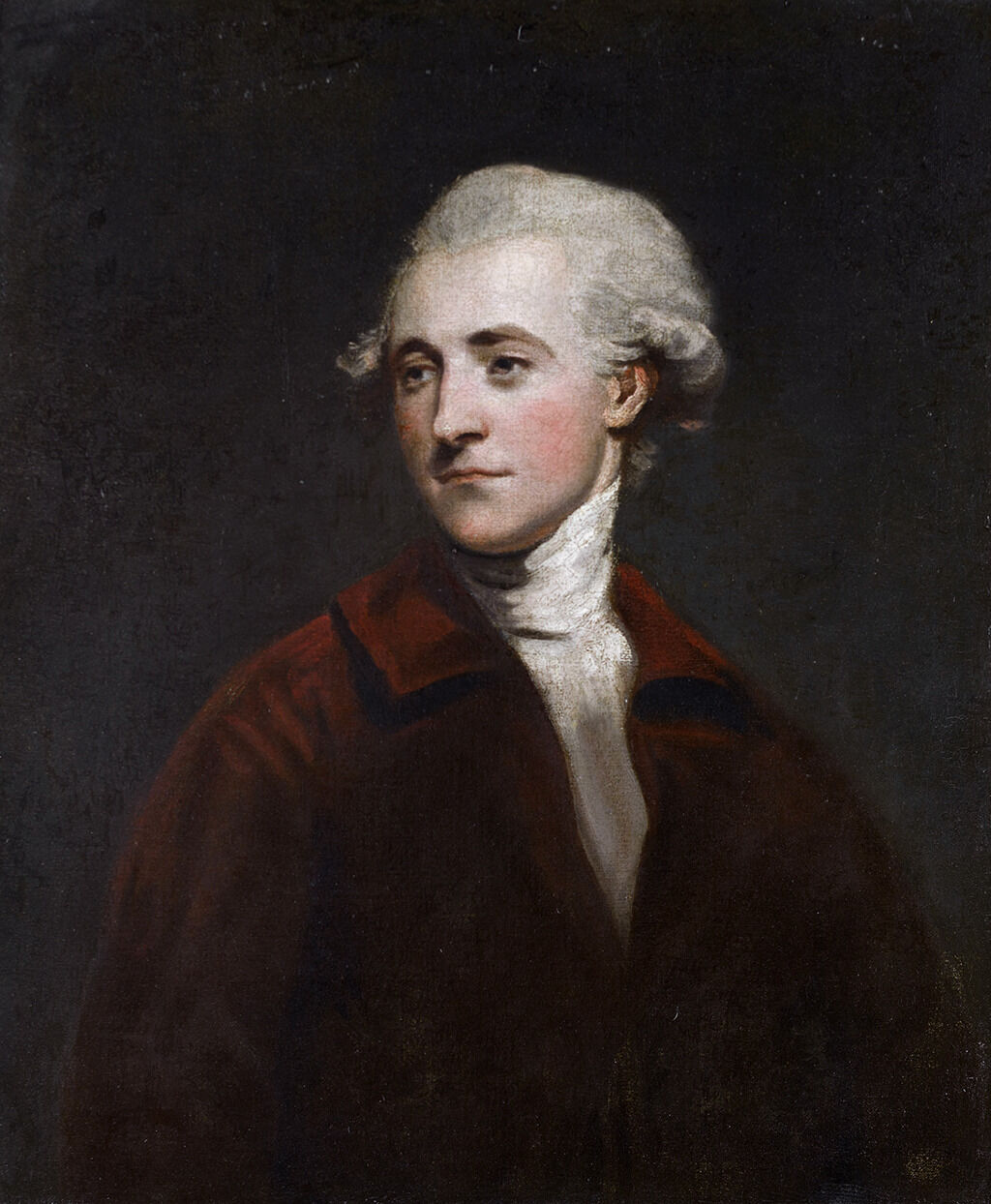 Sir Joshua Reynolds (English, 1723–1792) painted two portraits of the esteemed statesman and orator Richard Burke (1758–1794), son of Edmund Burke, around 1782. The portraits likely coincided with Richard Burke’s membership in the writer Samuel Johnson’s Literary Club.1See David Mannings and Martin Postle, Sir Joshua Reynolds: A Complete Catalogue of His Paintings (New Haven: Yale University Press, 2000), nos. 287 and 288, p. 1:115. No. 287 is the primary version of the painting, with Burke’s cravat more realized; no. 288 is the secondary version with the less finished cravat. There are at least four additional versions of the portrait of Burke noted in Mannings and Postle; see listings for catalogue numbers 288a, 288b, 288c, and 288d. There are no images of these paintings. The Club (as it was known in abbreviated form), established by Johnson and Reynolds in 1764, adds depth to the narrative surrounding Reynolds’s portraits of Burke as well as the present miniature. This gathering, initially convened to provide intellectual stimulation and conviviality for Johnson, evolved into a forum for lively debate and discourse among its members.