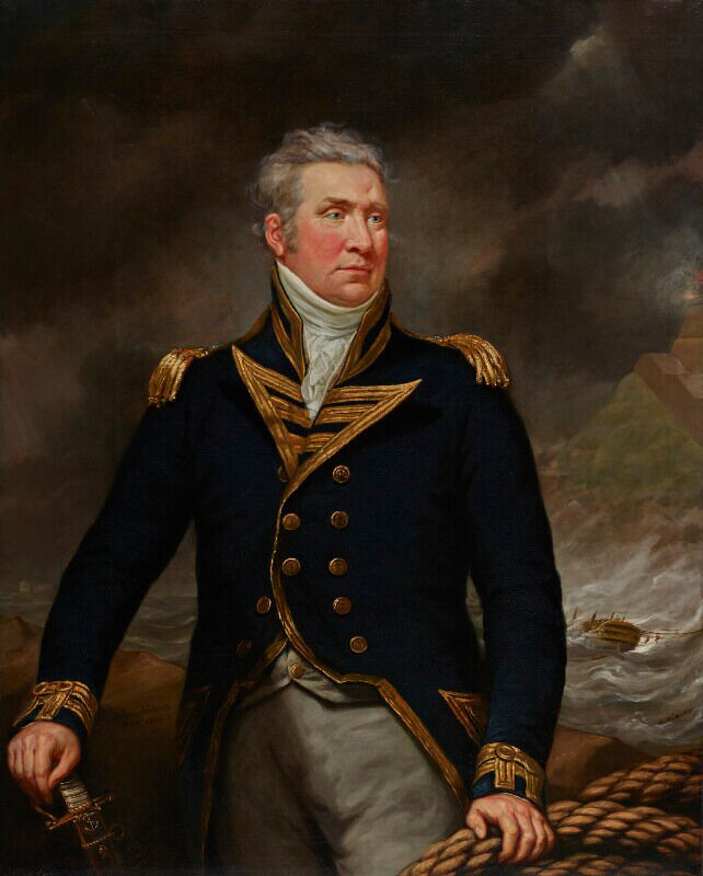 For reference, see Sir Thomas Lawrence, Captain Sir Edward Pellew, later 1st Viscount Exmouth, ca. 1797, oil on canvas, 30 1/8 x 25 1/4 in. (76.6 x 64.2 cm), National Maritime Museum, Greenwich, https://www.rmg.co.uk/collections/objects/rmgc-object-201626; Owen William, Admiral Sir Edward Pellew (1757–1833), 1st Viscount Exmouth, ca. 1817–19, oil on canvas, 50 x 40 in. (127 x 101.5 cm), National Maritime Museum, Greenwich, https://www.rmg.co.uk/collections/objects/rmgc-object-14159.