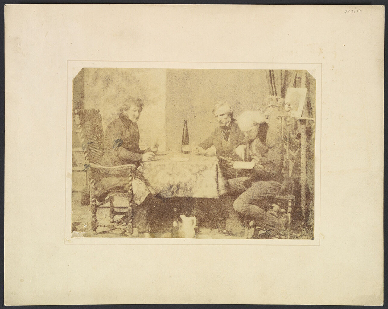 Very little is known about the artist identified only as “V.” The artist did often sign works with a cursive “V,” hence the identification of the artist with this letter; however, further research is required. “V” flourished in the late third and fourth quarters of the 1800s at a time when portrait commissions in England proliferated.