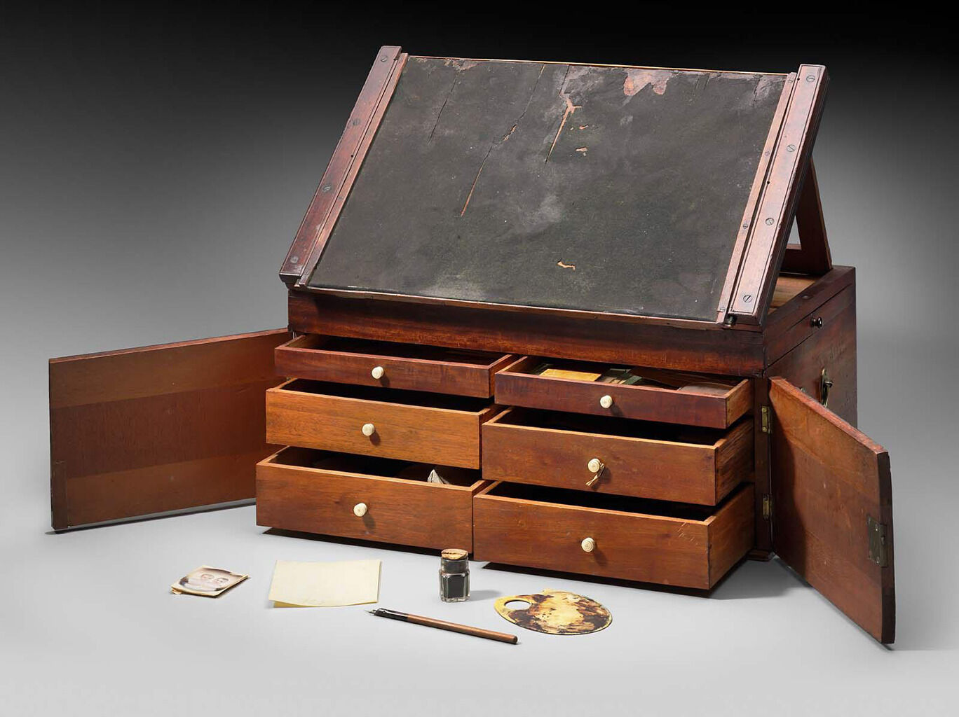 Boit was talented and commanded high prices, leading a scandalized Horace Walpole to opine that his fees were “not to be believed.”5Boit charged thirty guineas “for a lady’s head,” and “double that sum” for a larger miniature. For more ambitious projects, he charged 500 guineas or more, as in the case of the thousand-guinea advance that was forwarded by Prince George for the large royal commission mentioned later in this paragraph. Walpole, Anecdotes of Painting, 634. In spite of Boit’s success, his lofty ambitions and extravagance led him into financial arrears. His unsuccessful efforts to fulfill a royal commission for an unusually large enamel group portrait led him to flee to France in 1714.6Remington, “Boit, Charles.” Elected to the French Royal Academy in 1717, Boit died in Paris a decade later, besieged by creditors.7Boit was a Protestant and foreign national, albeit of French parentage, so his election to the esteemed and insular French Academy was somewhat unusual and attests to his skill and international reputation. Upon his arrival in France, his patrons included Philippe, Duc d’Orléans, who would rule France as regent beginning in 1715, and Tsar Peter the Great. Graham Reynolds, “Boit, Charles,” Grove Art Online, 2003, https://doi.org/10.1093/gao/9781884446054.article.T009653. Boit’s legacy lived on in England through his student Christian Friedrich Zincke (ca. 1684–1767).