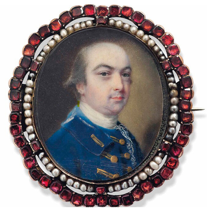 See John Smart, George IV, when Prince of Wales, ca. 1783, watercolor on vellum, 2 1/4 x 2 in. (6 x 5.2 cm), Royal Collection Trust, RCIN 420663, https://www.rct.uk/collection/search#/2/collection/420663/george-iv-1762-1830-when-prince-of-wales.