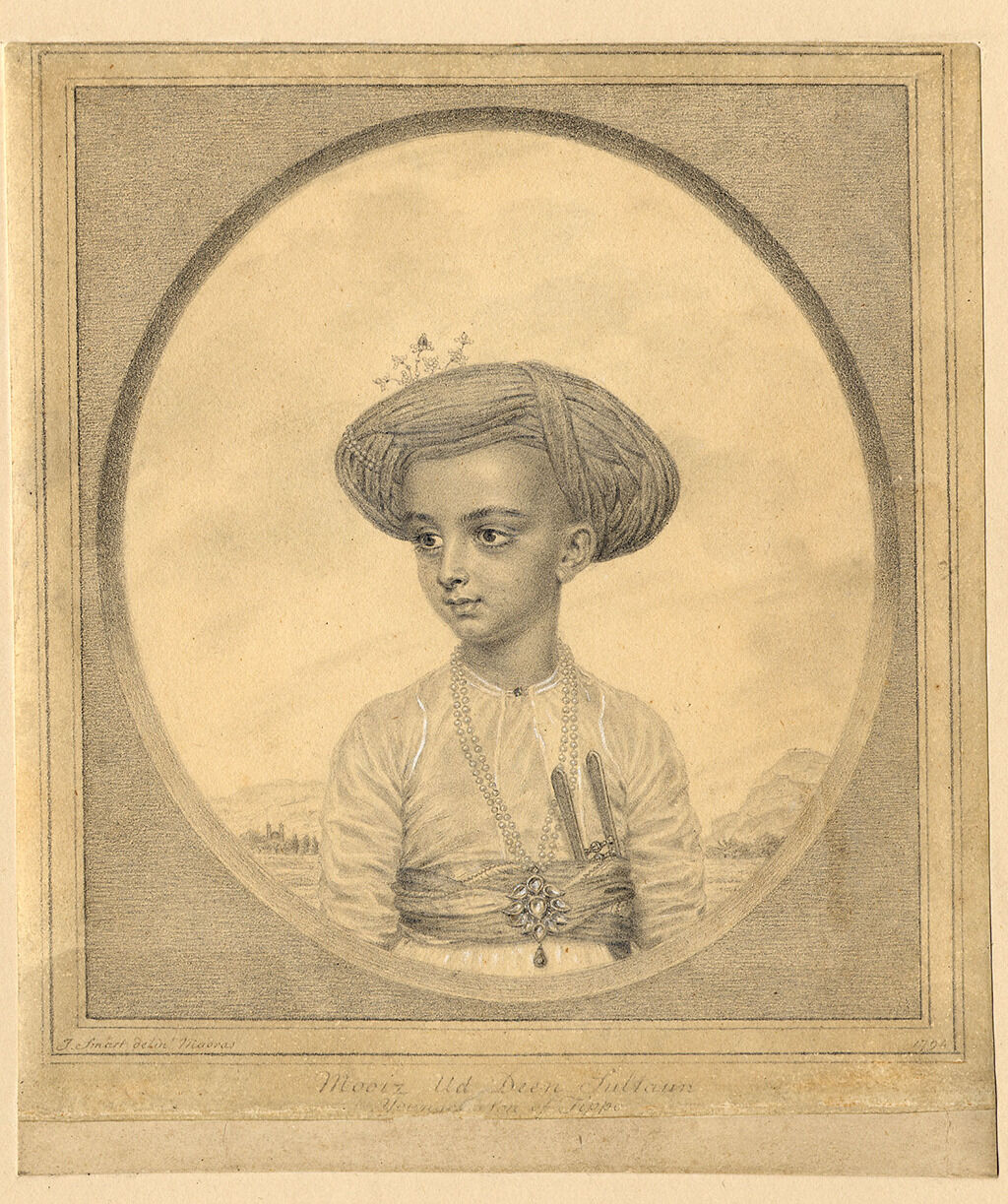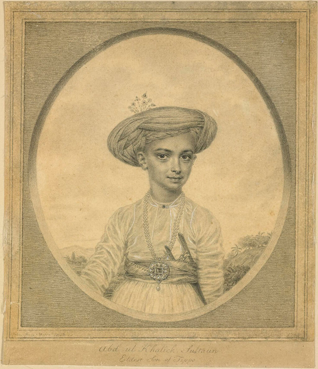 The prints went unrealized; however, drawings of Cornwallis (Fig. 16) and individual portraits of the two sons, Abdul Khalik Sultan and Mooiz Ud Deen Sultaun, survive and were titled by Smart in the margins, indicative of their intended purpose to be realized in print for mass consumption (Figs. 17, 18). An advertisement in the Times, London, of February 24, 1794, attests to the deliberate positioning of these portraits as both exclusive and authoritative: