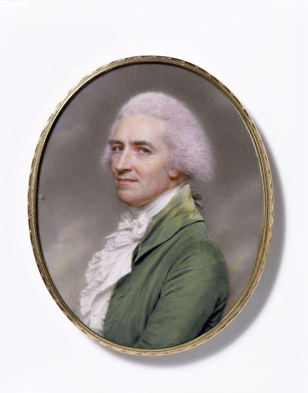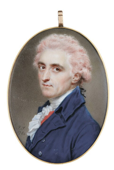 The Starr Collection of portrait miniatures at the Nelson-Atkins Museum of Art features seventy-one works by John Smart (1741–1811), spanning nearly every year of his prolific career. Amid this extensive collection—and indeed throughout Smart’s body of work—a striking phenomenon surfaces: the portrayal of sitters with pink or lilac-tinged hair, appearing consistently from his initial period in London (1760–1785) through his years in India (1785–1795) and his return to London (1795–1811).